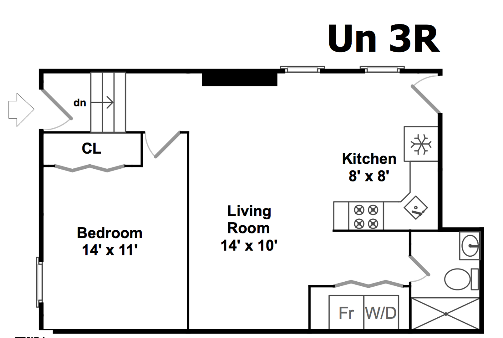 Top Floor 1bed/1bath unit at 1338 Huron